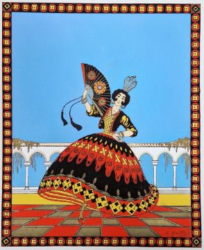 Six coloured prints of figures dancing to include Egyptian, Native American etc., each signed within plate, published by Galerie Lutetia, Paris, unframed 51cm x 32.5cm (6)