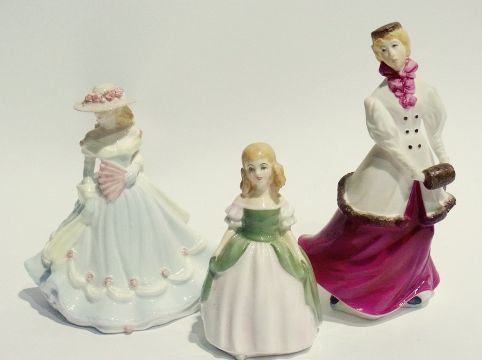 Four Albany Worcester bronze and china flower fairy figures, Royal Worcester "Winter Waltz" figure, another "Penny" and Coalport "Just for You" figure