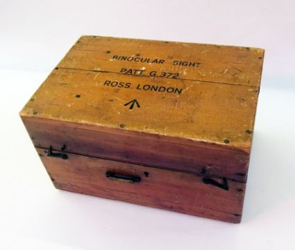 WWII naval binocular gun-sight, Ross - London, patt. G372, no. 118205, in original fitted pine box
