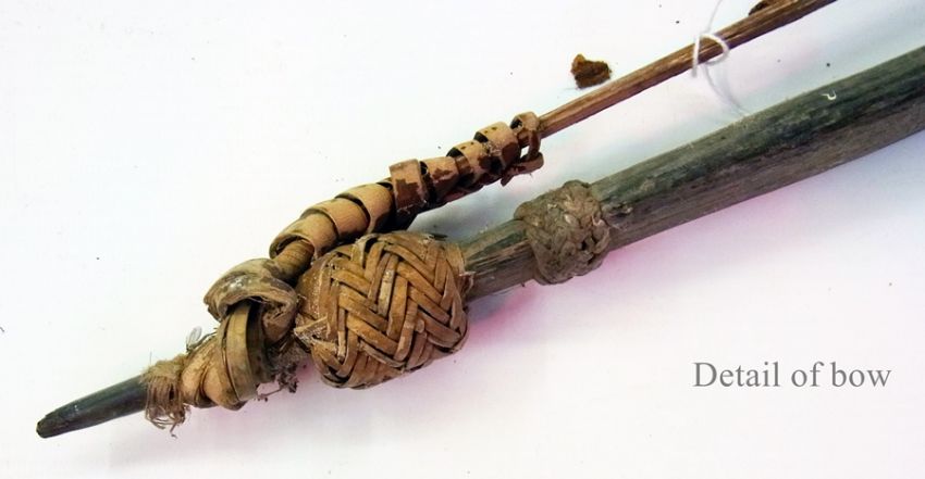 Two late 19th century Indian pig-sticking lances, each with bamboo shaft and having leather sheath, c.1900 and a longbow (3)