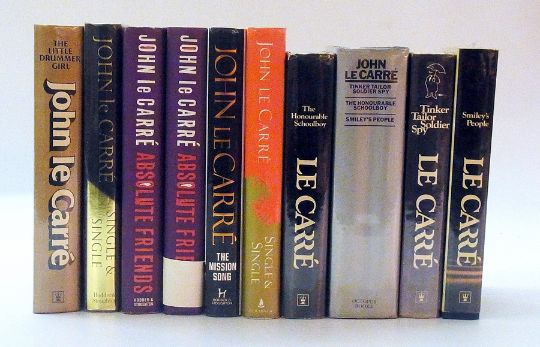 A large collection of John Le Carre, mainly first editions, all with dust jackets and mainly all signed, including:- "The Russia House", "A Perfect Spy", "Absolute Friends", "Smiley's People", "Tinker Tailor Soldier Spy", some with a dedication by John Le Carre to "Ian", 23 volumes (1 box)