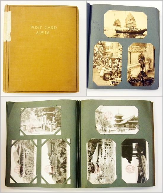 Postcard album containing cards of Canada, Australia and Japan (1923), Shanghai and Hong Kong