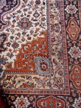 Cream wool rug, allover stylised floral and foliate decorated to a cream ground, 183cm x 124cm