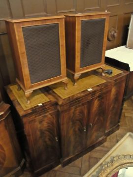 Reproduction mahogany stereo cabinet with record player, Sony amplifier and a pair of Dynatron speakers