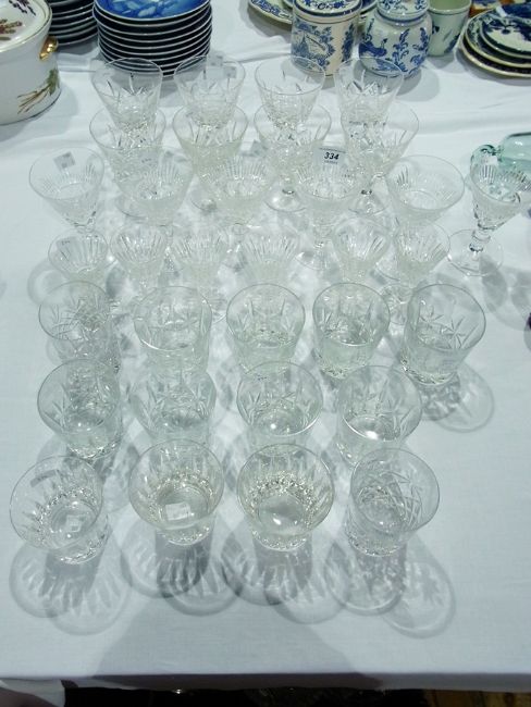 Set of six stem wines with flared bowls, slice cut, six matching small stem wines and a quantity of sundry cut drinking glasses