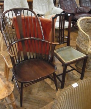 Ercol railback Windsor style open armchair and an Edwardian mahogany bedroom chair