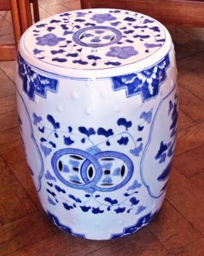 Chinese blue and white porcelain barrel garden seat, floral pattern, 36cm high