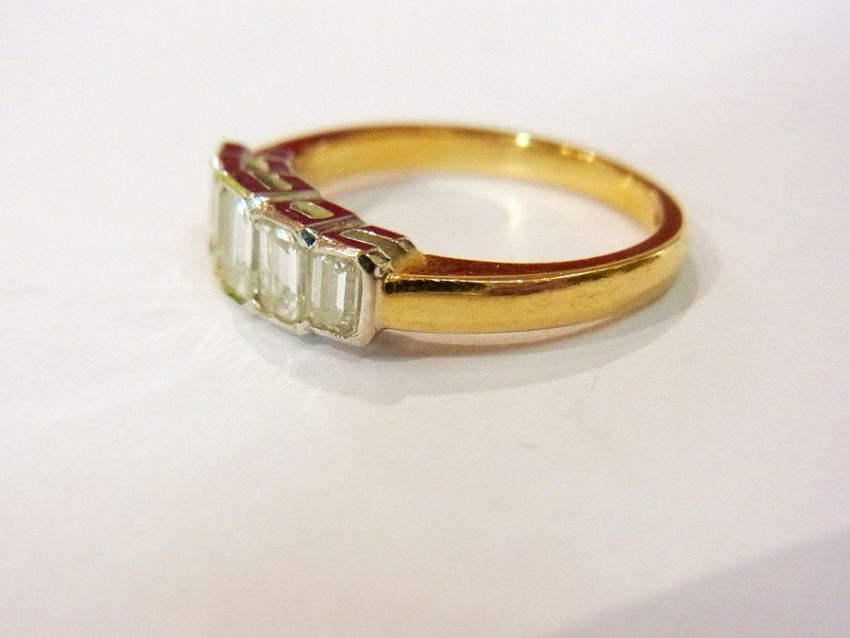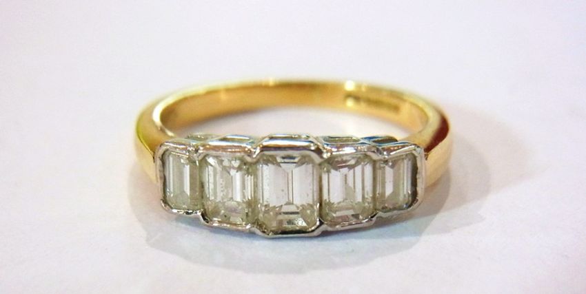 18ct gold and diamond five-stone ring, baguette cut, graduated