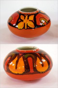 Pair Poole pottery Delphis style vases in an oblate form with abstract design