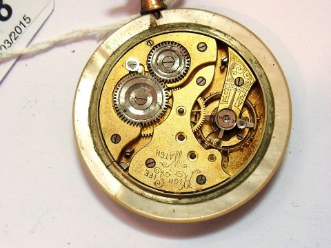 A 19th century gentleman's dress pocket watch, with mother-of-pearl case, the back with gilt metal floral inlays