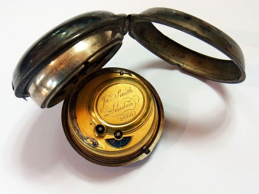 A Georgian silver cased pocket watch with enamel dial and Roman numerals, by Jason Smith London, no.2860