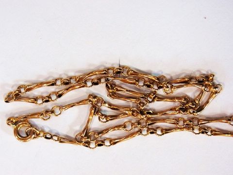 Rose gold-coloured metal chain, 9c marked, elongated twist links alternating with two rings, 4g approx.