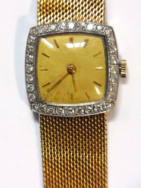 A 18ct gold and diamond set lady's wristwatch by Louis Ulysses Chopard, with diamond surround and snakeskin-effect 18ct gold bracelet