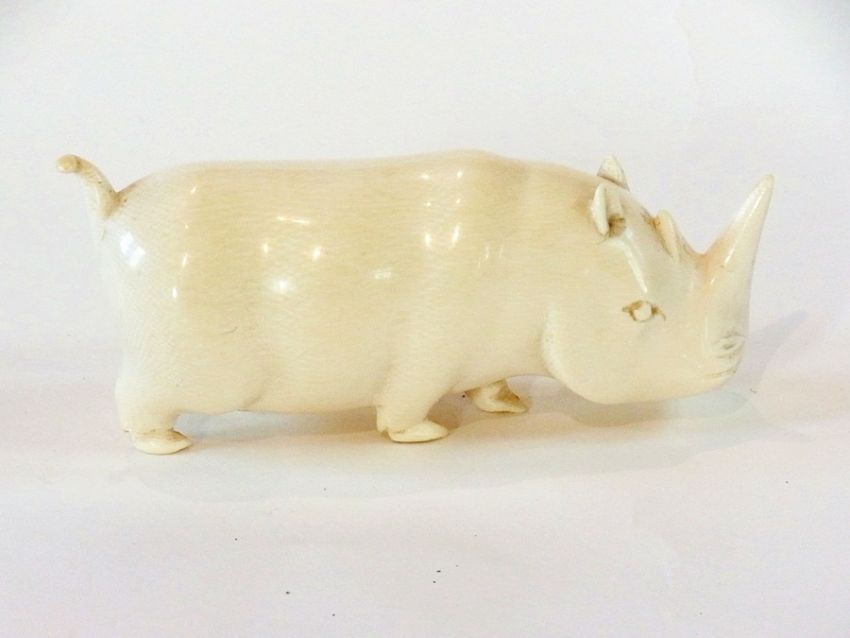 Early 20th century African carved ivory model of a rhinoceros, 15cm long