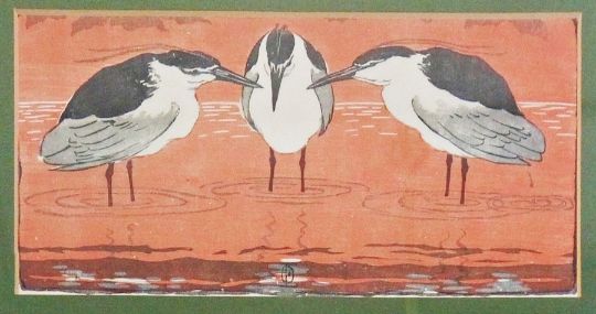 After Otto Ekmann (1865-1901) Woodcut Night herons, 12.5cm x 24cm