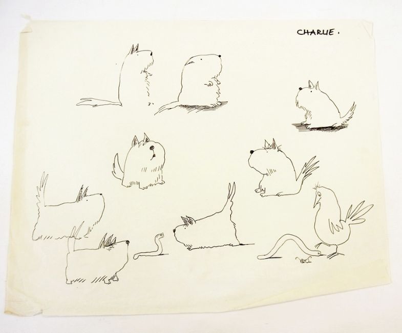 Paul Semple Gouache type drawing "Scene from Hell", signed and dated "1960", unframed Quantity drawings, pen and ink sketches and paintings on card by Bill Young and other artists including portraits, life study drawings, animals and other subjects, all unframed (1 portfolio)