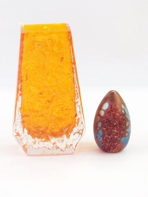 A Whitefriars style coffin-shaped tangerine coloured glass vase, 13cm