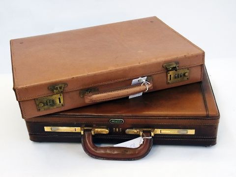 Pigskin attache case with red morocco and gilt embossed lining and a Mendoza briefcase (2)
