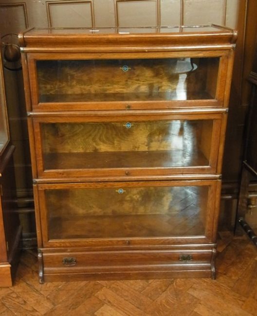 An oak Globe Wernicke sectional glazed bookcase with drawer below, width 86cm