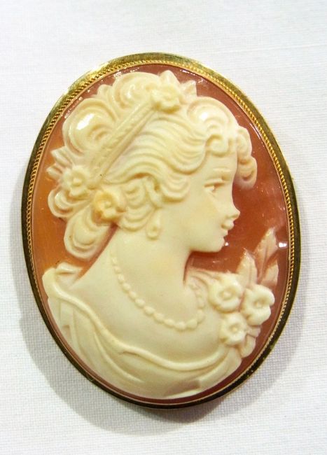 Oval cameo brooch in gold coloured metal, 9K, pendant/brooch mount