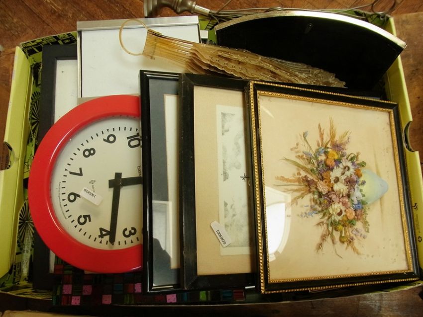 A quantity of pictures, two stools and other items