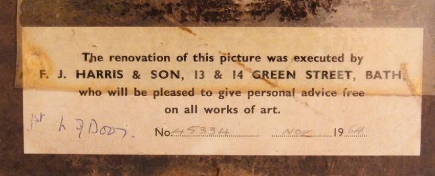 19th century school Oil on board Half-length portrait, "One of the Midfarths who gambled away Risehall, Hull", with F J Harris, Bath gallery label verso, 28.5cm x 23cm