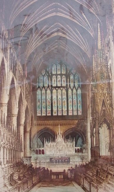 Edward Sharland Pair of coloured etchings, "Exeter Cathedral" and "Westminster Abbey", both signed in pencil