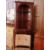 Mahogany reproduction double corner cupboard with dentil frieze, open shelf and cupboard below, on bracket feet, together with a pair of upholstered padded back chairs on square tapering legs (3)