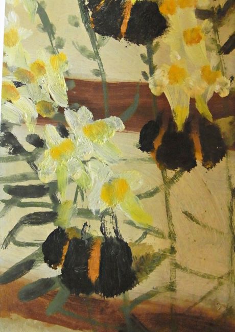 Mary Newcomb (1922-2008) Oil on board Bees on toadflax, signed and dated '75, 36cm x 9cm