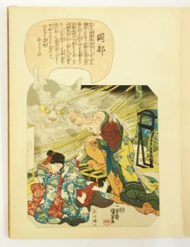 Japanese Ehon book in an  Orihon binding ( folding book, printed, double-sided)  with figures and characters