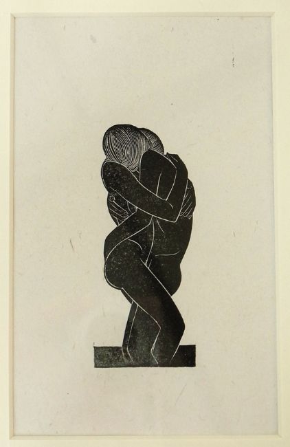 Eric Gill (1882-1940)Wood engraving on paper"Lovers, Second State", framed, 13cm x 8cm