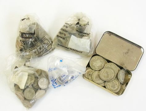 A small quantity of foreign coins plus three bags of post-1947 shillings and a quantity of pre-1947 and some 20