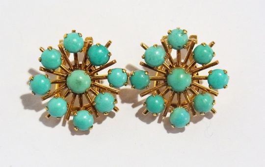 14ct gold and turquoise starburst brooch and matching pair clip earrings