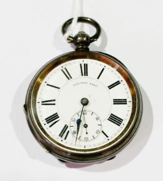 Victorian silver pocket watch by Fielding Bros, key winding, Birmingham 1885