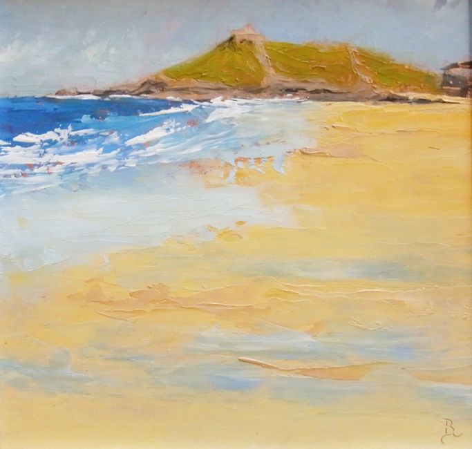 David Beer (contemporary) Oil on board "Across to the Island, St Ives", monogrammed, 22cm x 21cm