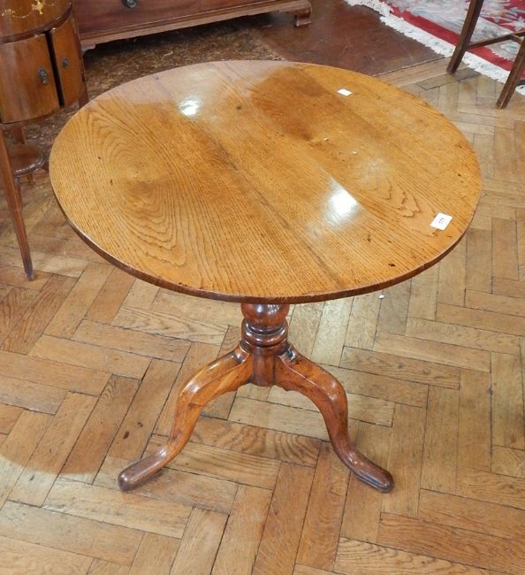 19th century oak circular top tripod table with turned pedestal support, tripod legs, diameter 70cm