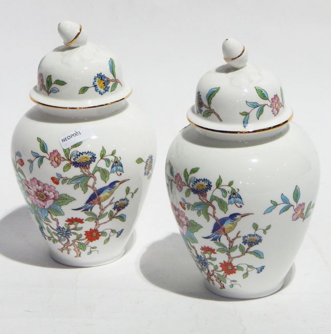 Pair continental porcelain cherub figures, rose encrusted and pair Aynsley "Pembroke" pattern covered ginger jars, quantity Lilliput models and other ceramics