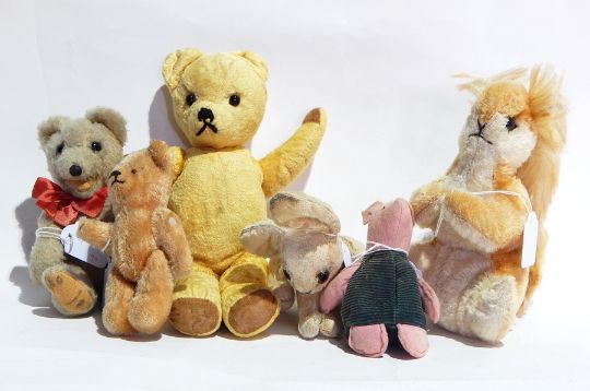Dean's squirrel, piglet, a rabbit and three other teddy bears