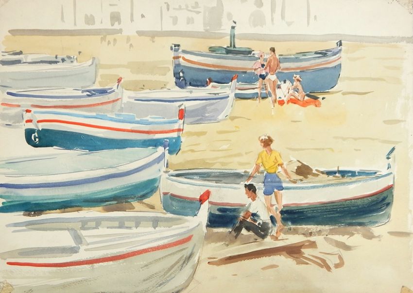 Harry Riley (1895-1966) Watercolour "Banyols sur Mer" dated verso 1957, 38cm x 53cm, unframed Watercolour "Teignmouth", boats in harbour, signed, 36cm x 49cm, unframed Watercolour "Whitstable", 21cm x 29cm, unframed Watercolour "Boats in harbour", signed, 38cm x 48cm, unframed (4) Live Bidding: If you would like a condition report on this lot, please contact us at info@cotswoldauction.co.uk or 01242 256363