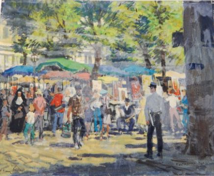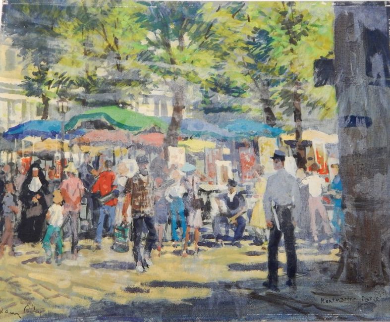 Harry Riley (1895-1966) Oil on board "Montmartre, Paris", market square with figures, signed, 41cm x 51cm, unframed Live Bidding: If you would like a condition report on this lot, please contact us at info@cotswoldauction.co.uk or 01242 256363