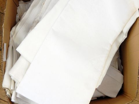 Two large damask banqueting cloths, three large damask tablecloths, a smaller damask tablecloth, a large quantity of linen hand towels, various damask table napkins, etc. (1 box) Live Bidding: If you would like a condition report on this lot, please contact us at info@cotswoldauction.co.uk or 01242 256363