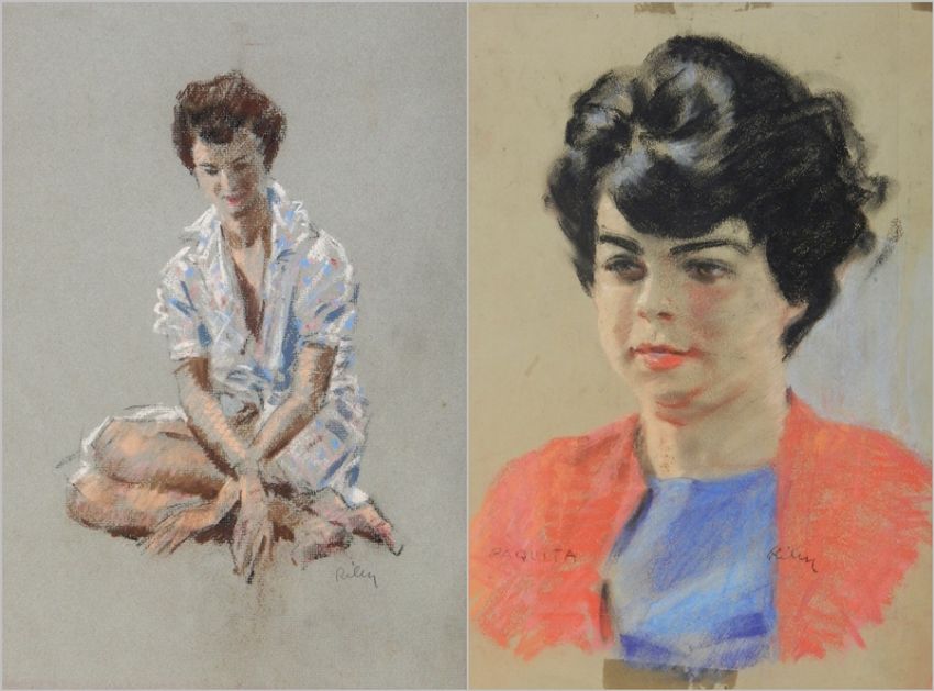 Harry Riley (1895-1966) Pastel "Lady, seated". 25cm x 37cm, unframed Pastel "Head and Shoulder Portait of Lady". 30cm x 29cm Live Bidding: If you would like a condition report on this lot, please contact us at info@cotswoldauction.co.uk or 01242 256363