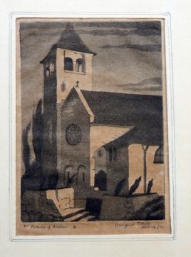 Margaret Jolliffe Black and white print "St Frances of Assisi" and other prints and pictures (all unframed)