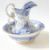 Victorian Sunderland lustre commemorative naval jug, inscription beneath, transfer printed three masted ship within inscription 'May Peace and Plenty upon our Nations smile, with Trade, with Commerce Bless the British Isle', reverse cartouche printed with poem 'The Sailor's Tear' , linked beneath spout with view of the cast iron bridge of the River Wear.....open 9th Aug 1796. (af) 23 cms high, together with a blue and white patterned wash jug and bowl