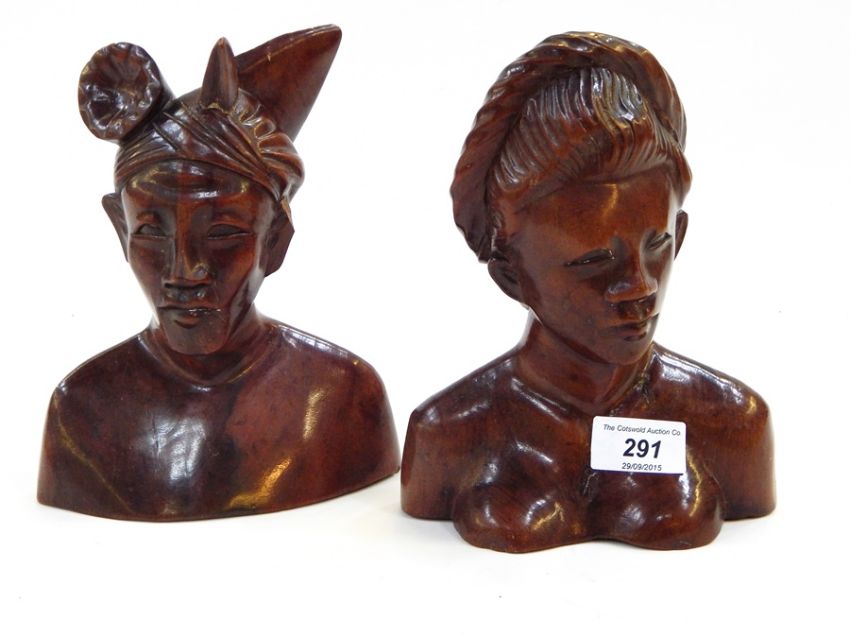 Hardwood carved bust of a man, possibly South Seas, another similar and an African carved wooden bust