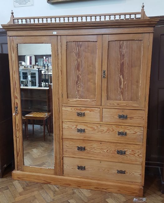 Pine linen chest with turned and bulbous cornice, two short and three long graduating drawers, 170cm wide