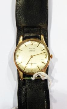 Mid 20th century gent's Baume 9ct gold wristwatch with subsidiary seconds dial, hallmarked Sheffield 1968, on leather strap