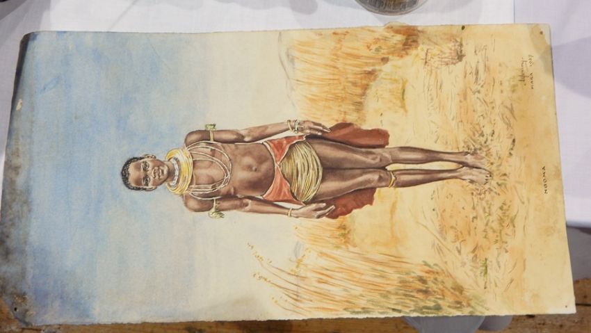 A Young Watercolour drawing "Ngoma", full portrait of an African girl in native dress, signed lower right "A Young, Mara 1937" Two other similar watercolours and another picture (4)