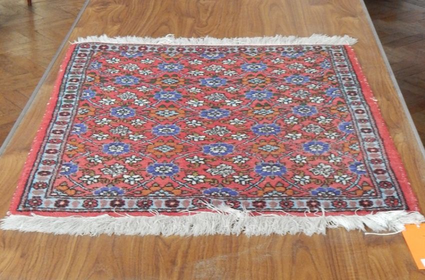 Wool rug, red ground, floral trellis decorated, 82cm x 66cm