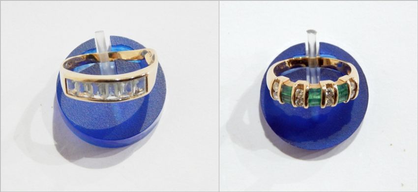 14K gold, green and white stone ring alternating green and white stones and a 9ct gold and white stone ring (2) Live Bidding: If you would like a condition report on this lot, please contact us at info@cotswoldauction.co.uk or 01242 256363